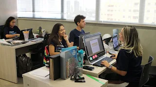 | Parte da equipe da Live Results em dia de trabalho. |