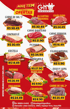 O frigorífico GN (o antigo MAAME) fica na Avenida senador João Câmara, 2683, no Espaço Vivo em Assú. Telefone: 84 99804-6400 (WhatsApp). Corre e aproveite as promoções.